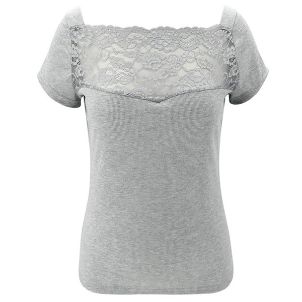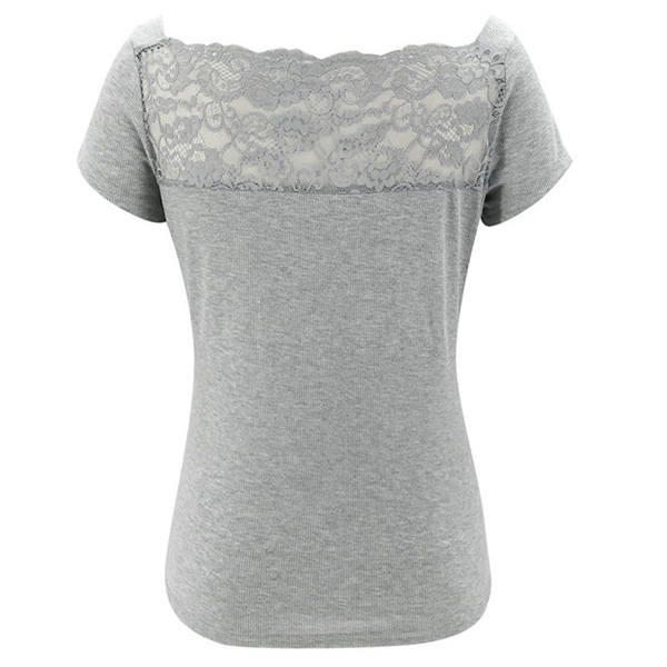 Combines of cozy,stylish and sexy vibes,this t-shirt is worth to arouse your attention. Solid color style,finished with short sleeve,square collar and lace spliced details,this t-shirt not only can give you a comfortable day,but also can offer you different matching styles.