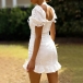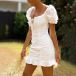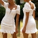 Looking for a dress that is versatile for both night dating and weekend out? Then opt for this dress! It is finished with short sleeve,square collar,ruffle hem and a fit silhouette design,this dress can exude your sweet yet feminine side. The lace-up details will make this piece look more attractive. Like it? Then invite it to your wardrobe.