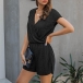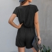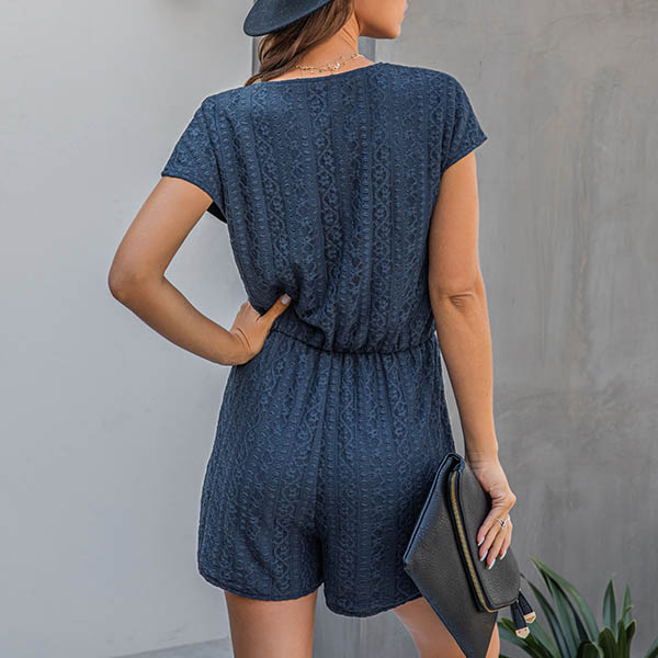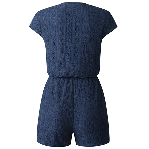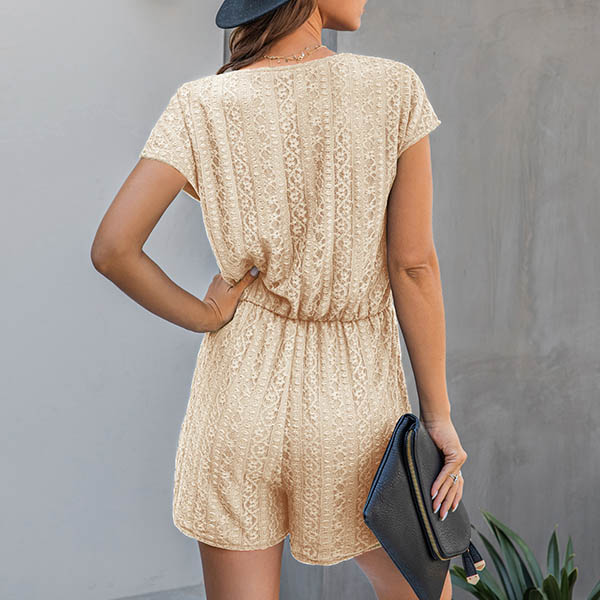 Fashion Short Sleeve V-neck Elastic Waist Lace Romper