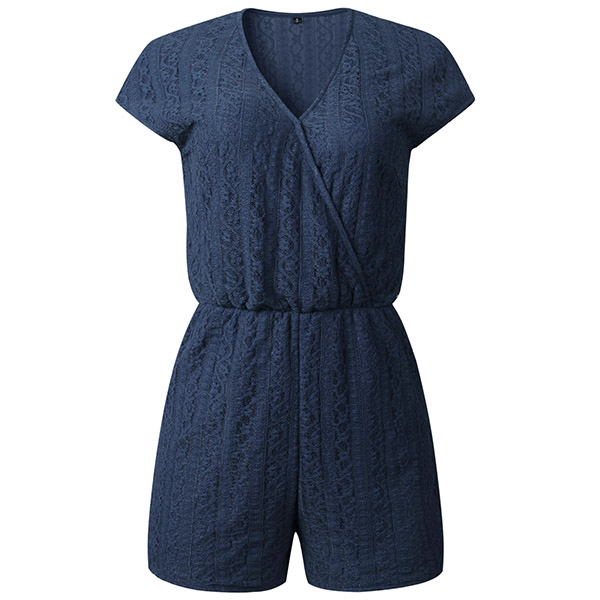Hey,girls,you can trust in this lace romper to boost your style and charm. It is finished with short sleeve,v-neck and an elastic waist,this piece not only can maintain the comfy,but also can exude your feminine appeal. It is worth to be your new darling in these summer days.