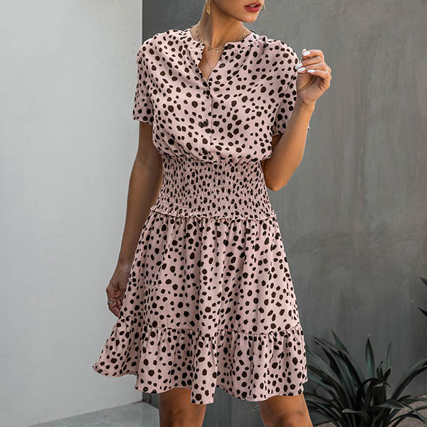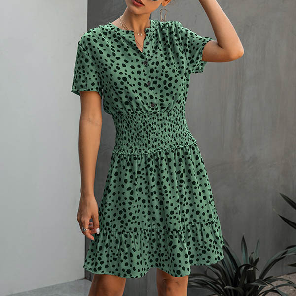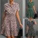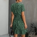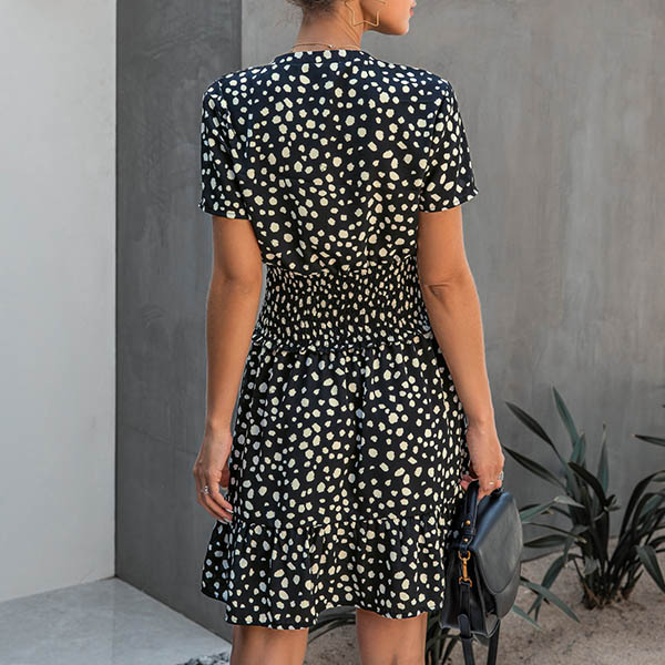 Fashion Short Sleeve V-neck Elastic Waist Printed Dress