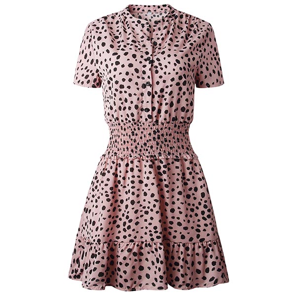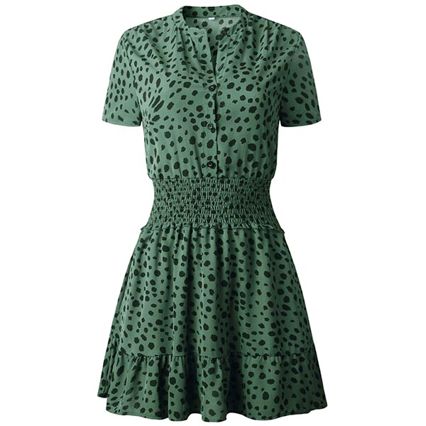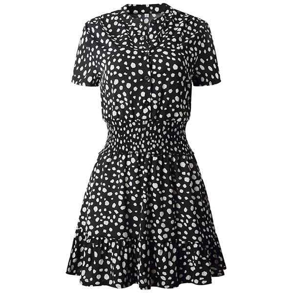 No matter for your busy workdays or weekend out,this stylish dress can be a wise choice. Its chic printed details make it look more eye-catching. Finished with short sleeve,v-neck and an elastic waist,this dress can make you look effortlessly charming and beautiful!