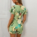 Fashion Short Sleeve V-neck High Waist Printed Romper