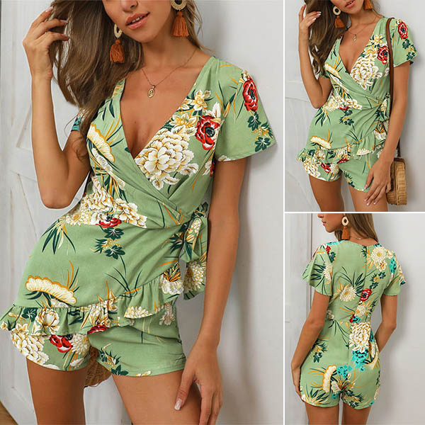 Hey,girls,when you wanna update your daily style,you can have a try this romper. It features chic and eye-catching printed details,finished with short sleeve,v-neck and high waist design,this piece can showcase your slender figure as well as boost your feminine appeal.