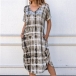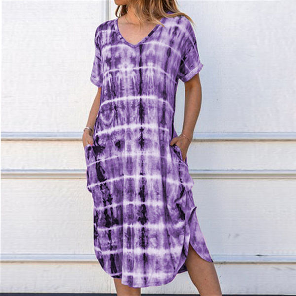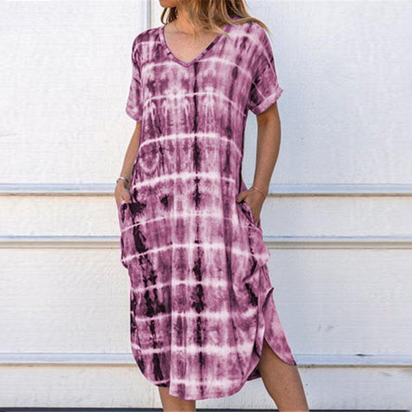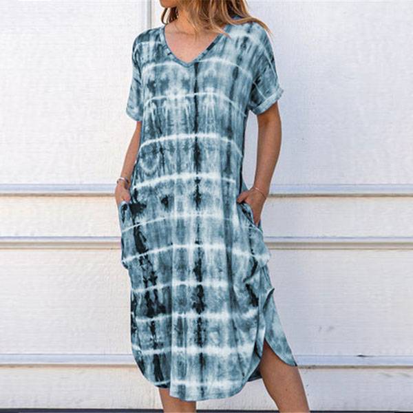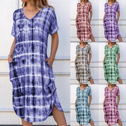 Looking for a dress that is versatile for both work and weekends,then opt for this dress! Itc chic printed details make this piece look so eye-catching. Finished with short sleeve,v-neck,an irregular hem and a loose silhouette,this piece knows how to give you a cozy yet stylish style.