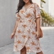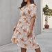 Fashion Short Sleeve V-neck Irregular Hem Printed Dress