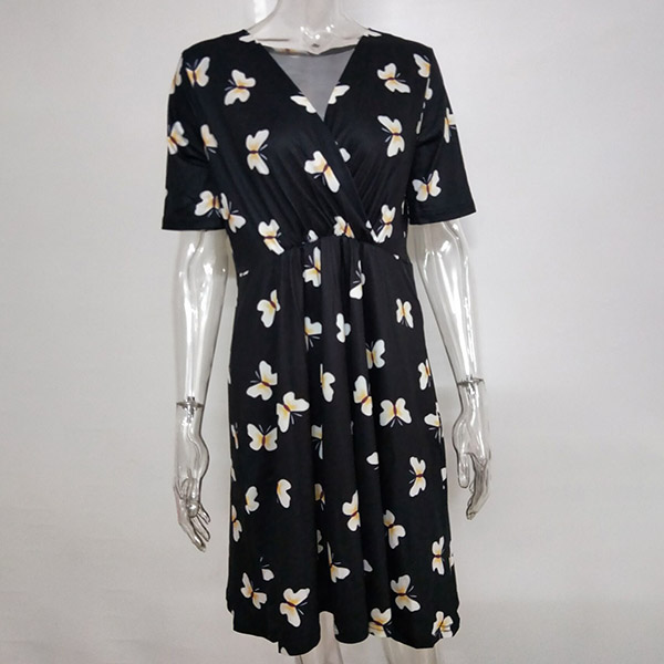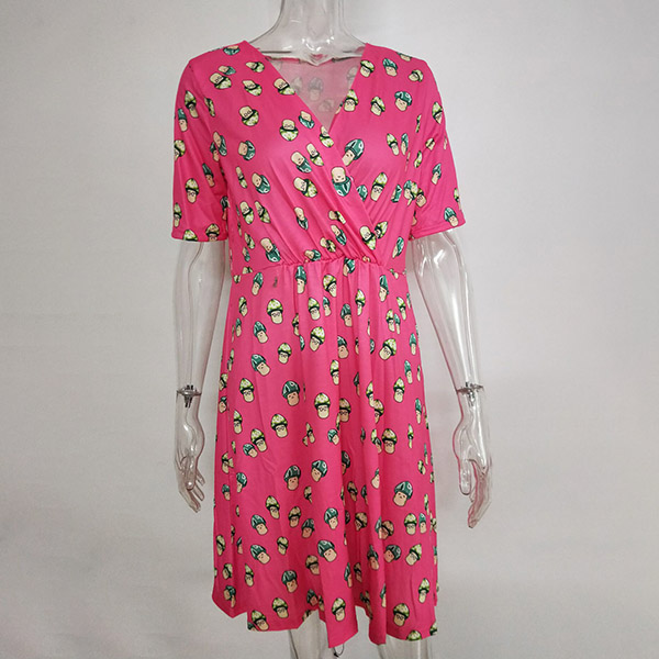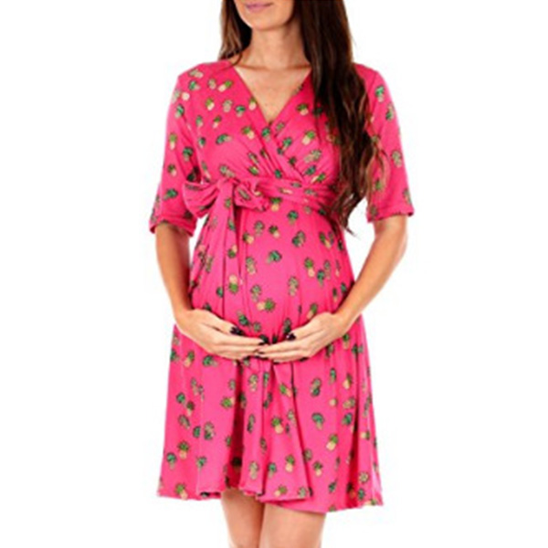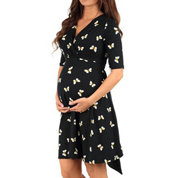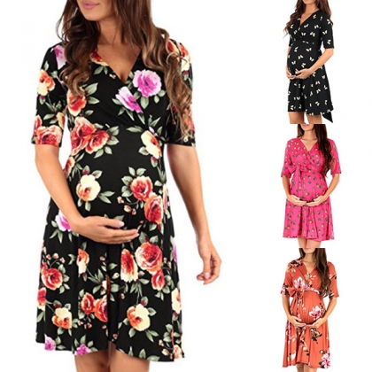 Fashion Short Sleeve V-neck Printed Maternity Dress