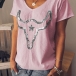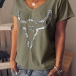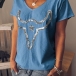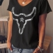 Fashion Short Sleeve V-neck Sequin Spliced T-shirt