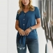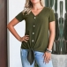 Fashion Short Sleeve V-neck Single-breasted Knotted Hem Top