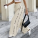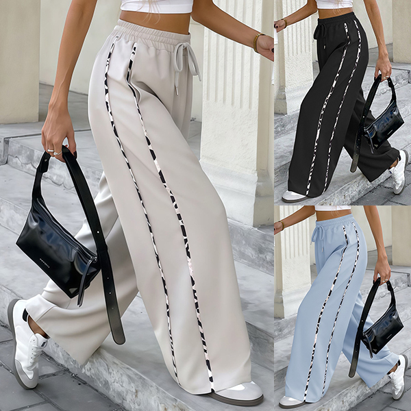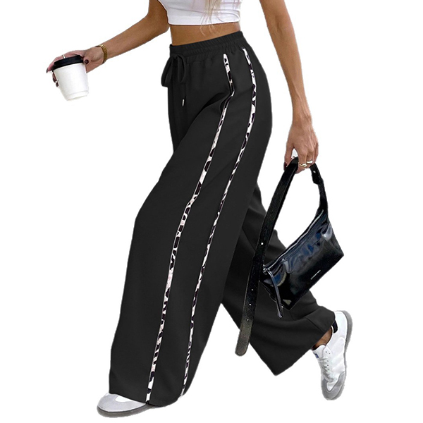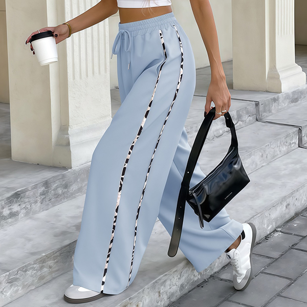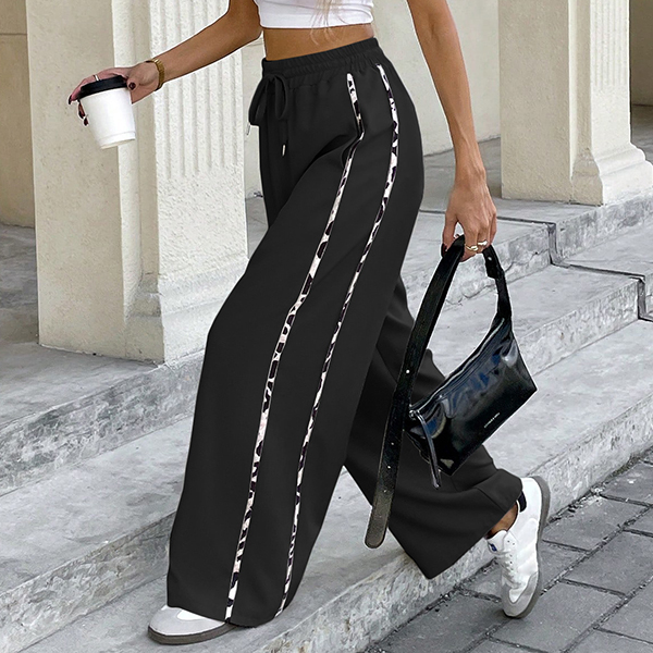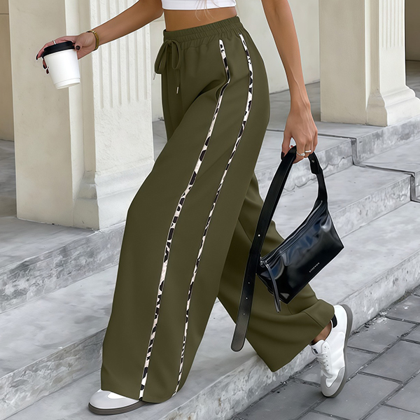 Dessa iögonfallande byxor med leopardmönstrade sidoremsor ger en djärv kontrast till bastyget och lyfter din look. Tillverkade i stretchigt, slitstarkt material med mjuk struktur formar de sig perfekt efter kroppen och erbjuder maximal rörelsefrihet. Den höga, elastiska midjan skapar en smickrande silhuett och extra komfort. Oavsett om du strosar på stan, njuter av helgens äventyr eller vill sticka ut på trendiga tillställningar är dessa byxor det ultimata valet. Kombinera med en enkel t-shirt, crop top eller elegant blus för en personlig stil som fångar allas blickar.