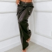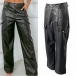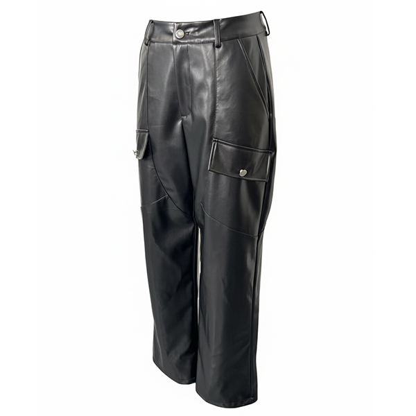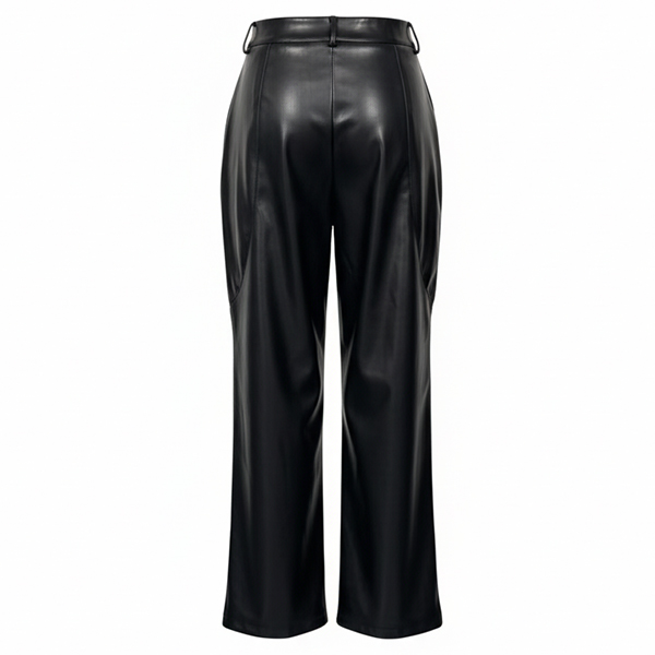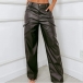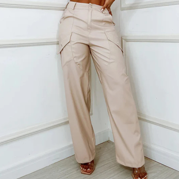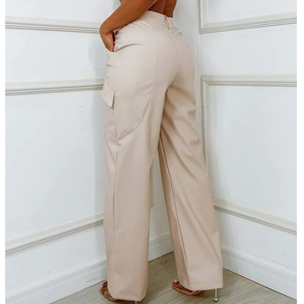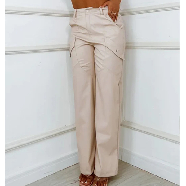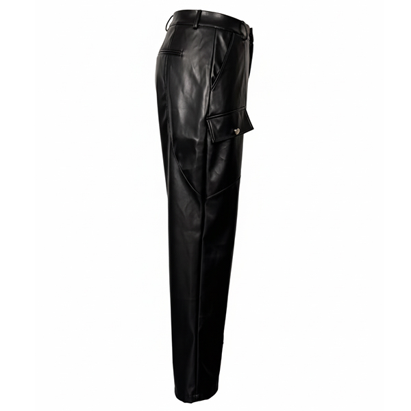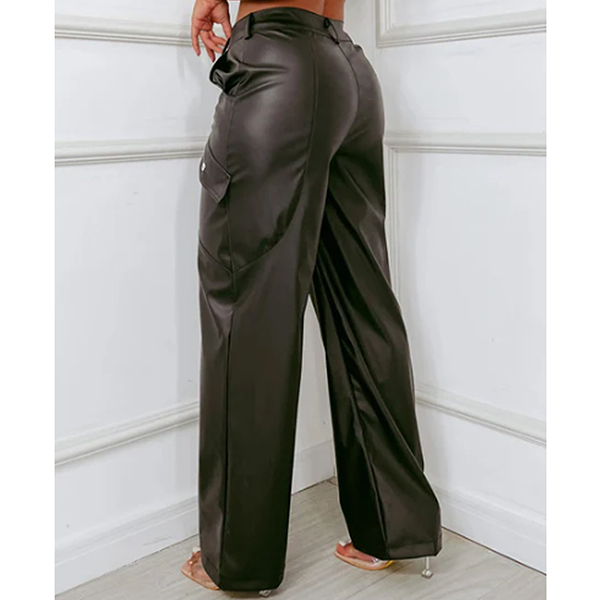Trendiga PU-byxor med raka ben och praktiska sidofickor