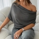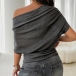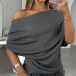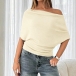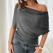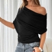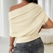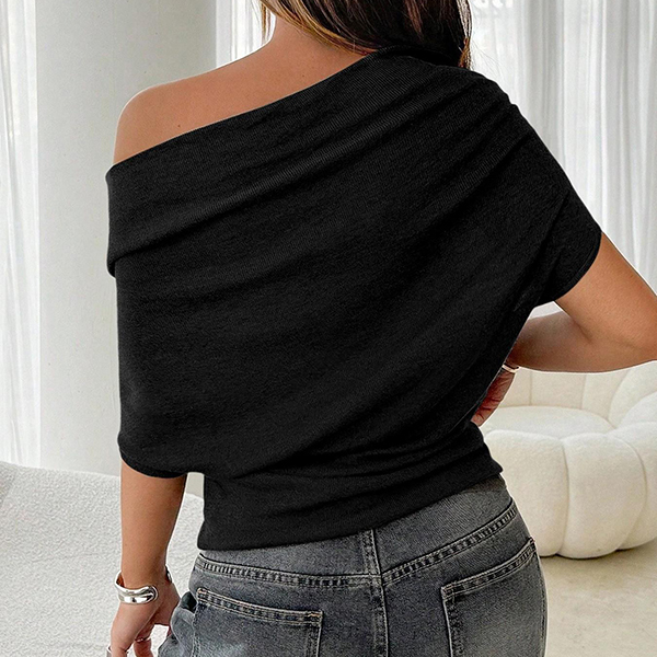 Moderiktig kortärmad skjorta med sned axel och fladdermusmönster