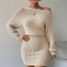 Denna slående asymmetriskt snedskurna stickade klänning utstrålar modern elegans med sin dramatiska axeldetalj och kroppsnära siluett. Tillverkad i extra mjukt, stretchigt material som formar sig efter figuren utan att begränsa rörligheten – en uppgradering från vanliga vardagsklänningar. Unik asymmetrisk design och sömlös stickning ger en exklusiv look som fångar blickar var du än går. Matcha med stilettklackar och minimalistiska smycken för en sofistikerad kvällslook, eller bär med ankelboots och en skräddarsydd kavaj för en avslappnat chic vardagsstil. Perfekt för fest, after work eller middag – ett mångsidigt nyckelplagg i garderoben. Begränsad upplaga, skynda att lägga vantarna på säsongens trendplagg!
