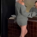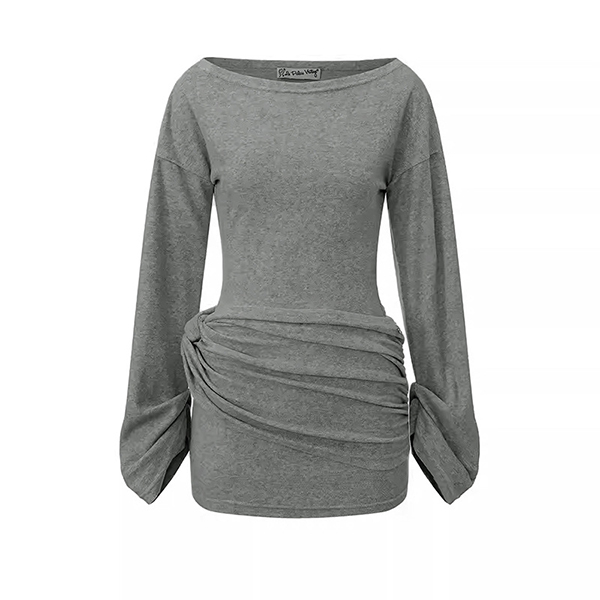 Ge din festgarderob en exklusiv twist med en grå bodycon-miniklänning utrustad med en dramatisk snedställd axel och strategiskt placerade rynkdetaljer. Den åtsittande, elastiska siluetten framhäver dina kurvor och ger en modern asymmetrisk elegans som få andra plagg kan erbjuda. Tillverkad av högkvalitativt stretchmaterial för optimal komfort och perfekt passform. Komplettera med slanka klackar och minimalistiska smycken för en sofistikerad kvällskänsla och låt dig bli festens mittpunkt.