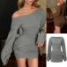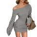 Trendiga bodycon-klänningar med asymmetriska axelband och rynkade långärmar