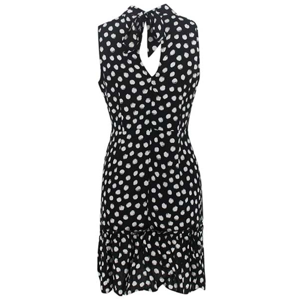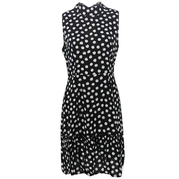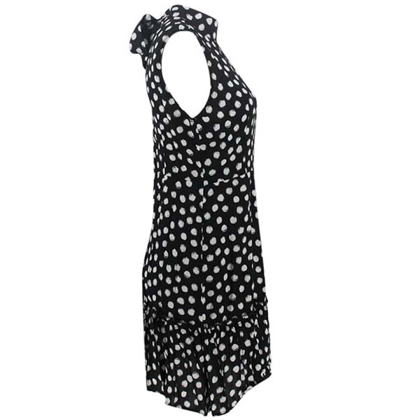 Fashion Sleeveless Mock Neck Ruffle Hem Dots Printed Dress