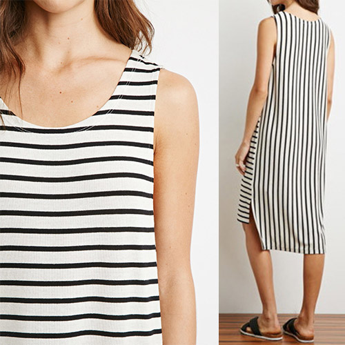 Strolling on your town to enjoy your relaxed weekend with this casual dress. Striped style,with sleeveless,