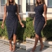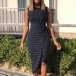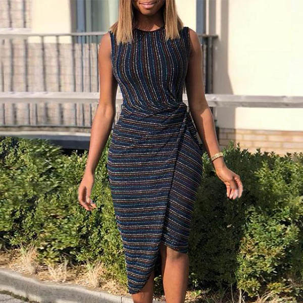 Fashion Sleeveless Round Neck Irregular Hem Slim Fit Striped Dress