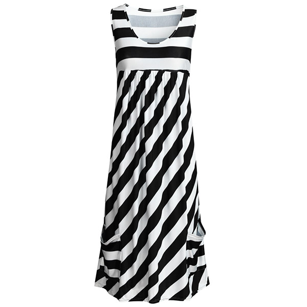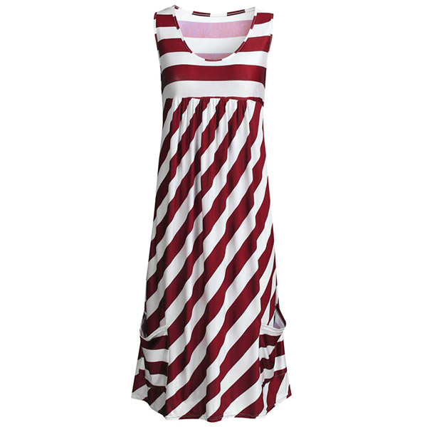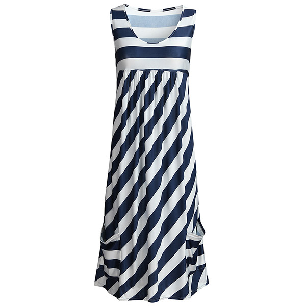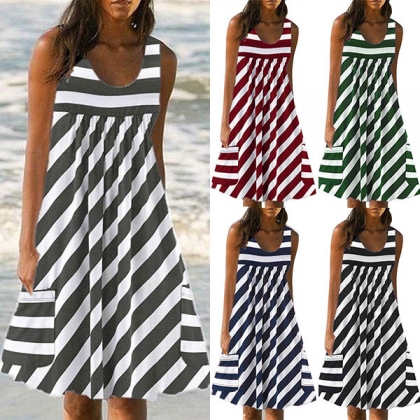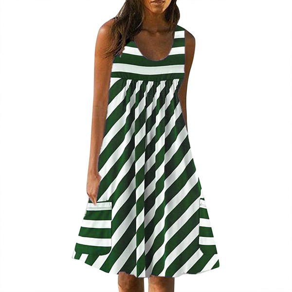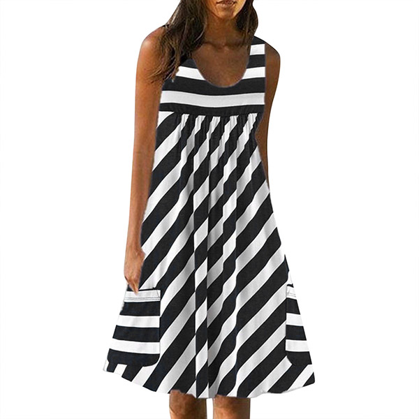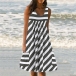Fashion Sleeveless Round Neck Loose Striped Dress
