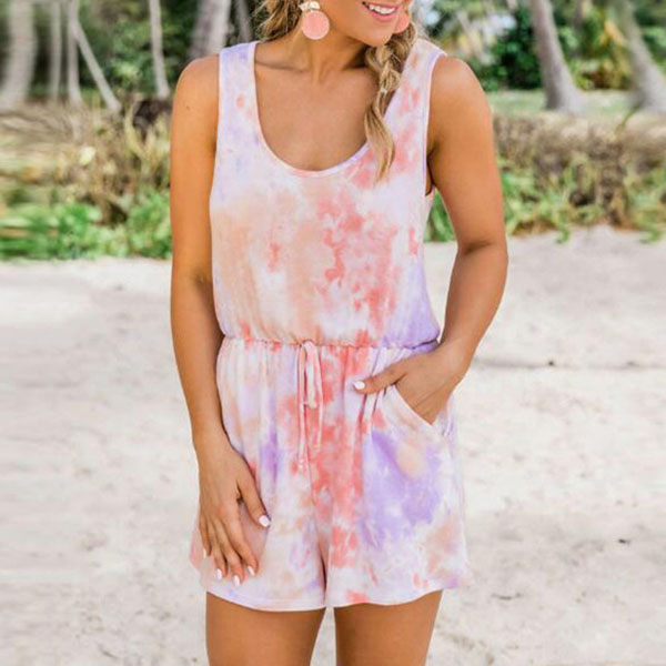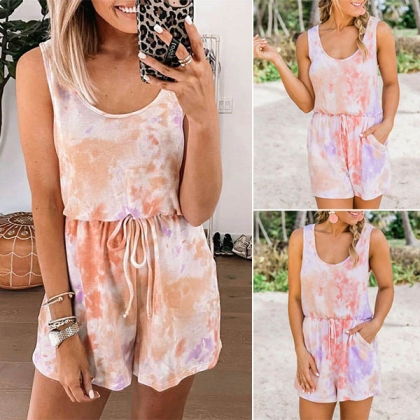 Fashion Sleeveless Round Neck Tie-dye Printed Romper