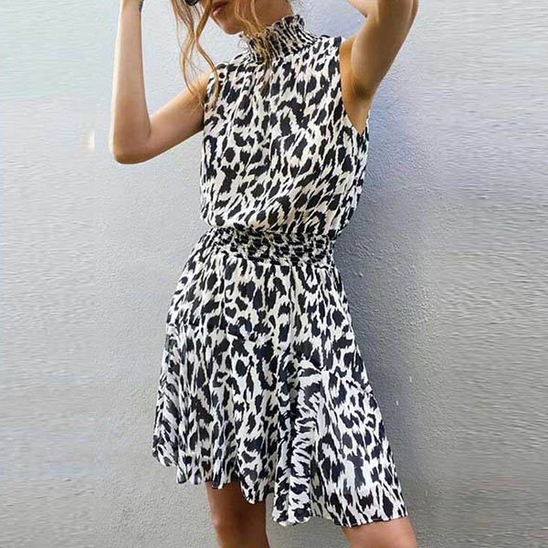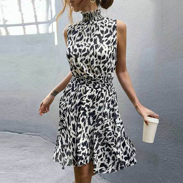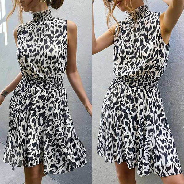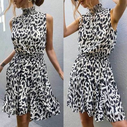 You can have an effortless charming and beautiful look when you wear this dress. It is designed with leopard printed details,with sleeveless,high waist and ruffle stand collar design,this piece can give you an easy transition from daytime out to night dating.