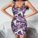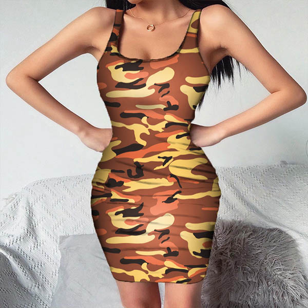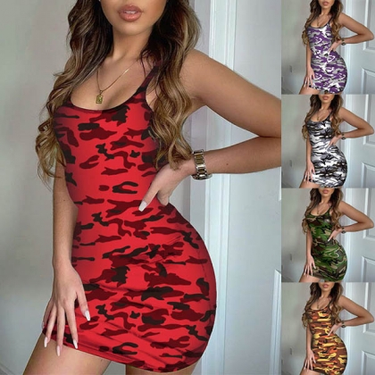 Fashion Sleeveless U-neck Camouflage Printed Slim Fit Dress