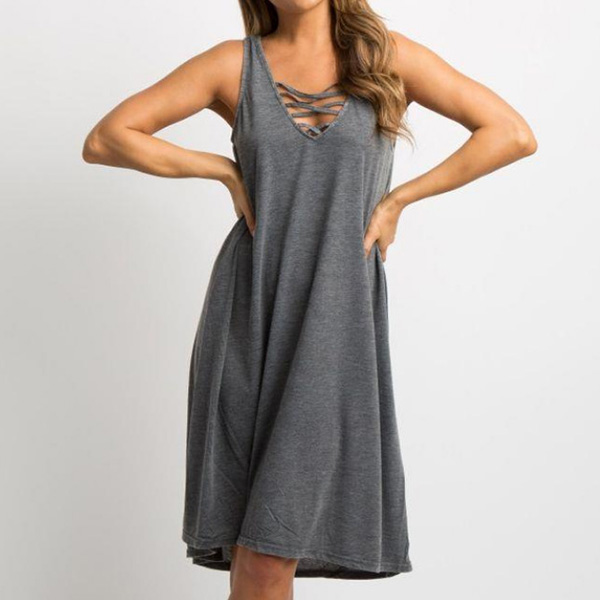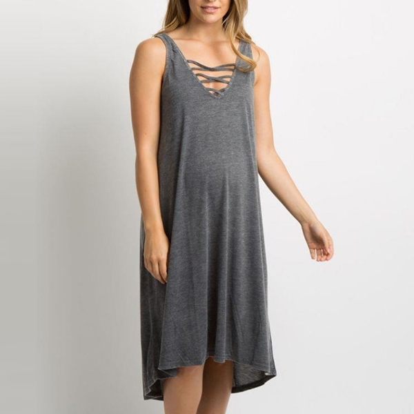 If you are a pregnant woman,this cozy yet stylish dress can easily strike your mind. It comes with a solid color,the v-neck and lace-up design will add the entire charm,while the super soft,breathable fabric can ensure an utmost comfort. Let it accompany these hot summer days.