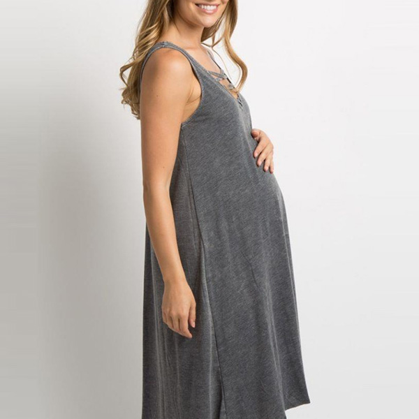 Fashion Sleeveless V-neck Solid Color Maternity Dress