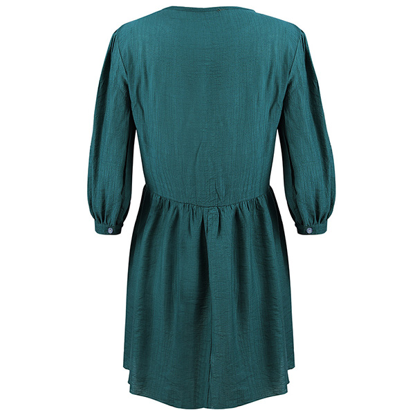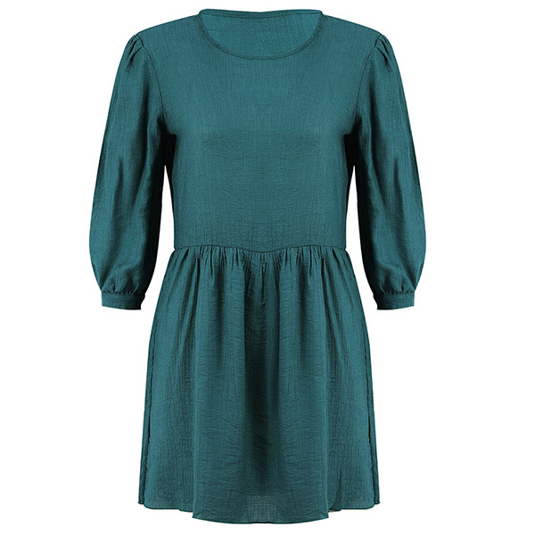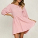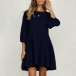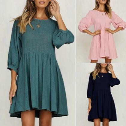 Fashion Solid Coloe 3/4 Sleeve Round Neck Dress