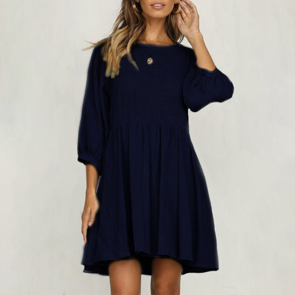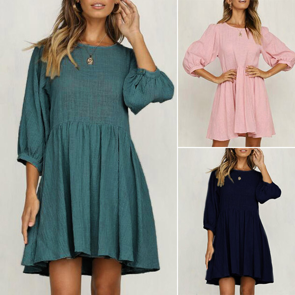 Your simple yet lively personality will be on full display with the exceptional style of this dress. Boasts a solid color,finished with 3/4 sleeve,round neck and a loose silhouette,this dress is sure to give you a cozy yet stylish style. Your perfect choice on both workdays and casual weekends.