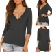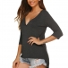 Solid color style,finished with 3/4 sleeve,v-neck and a high-low hem design,sexy yet distinctive.