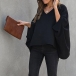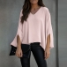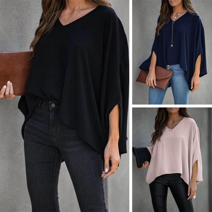 Fashion Solid Color 3/4 Dolman Sleeve V-neck Irregular Hem Loose Top