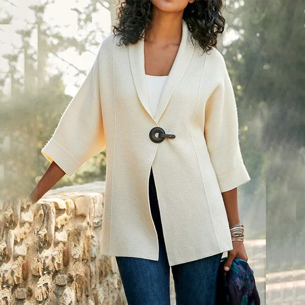 When the autumn days hit,this cardigan coat would be your new darling. Solid color style,the 3/4 sleeve and unique button design make this piece look not so simple and monotonous. When you feel a little cold around your office or on the breezy nights,you can just slip into this little piece to stay warm and stylish.