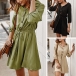 Fashion Solid Color 3/4 Sleeve POLO Collar Front-button Dress