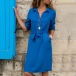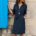 Fashion Solid Color 3/4 Sleeve POLO Collar Shirt Dress