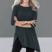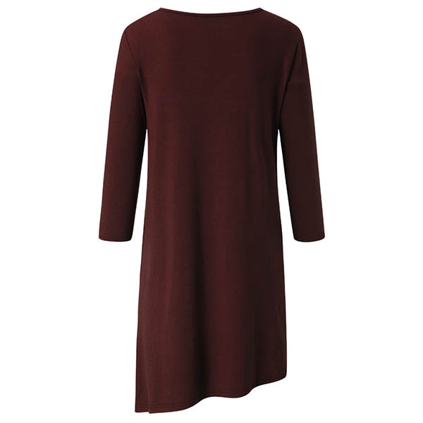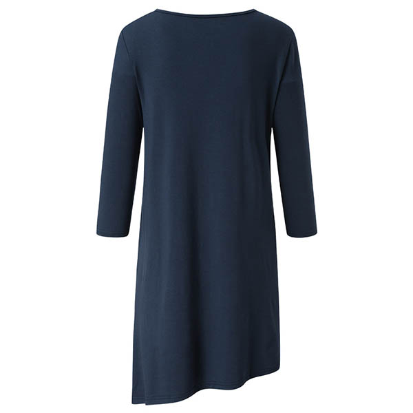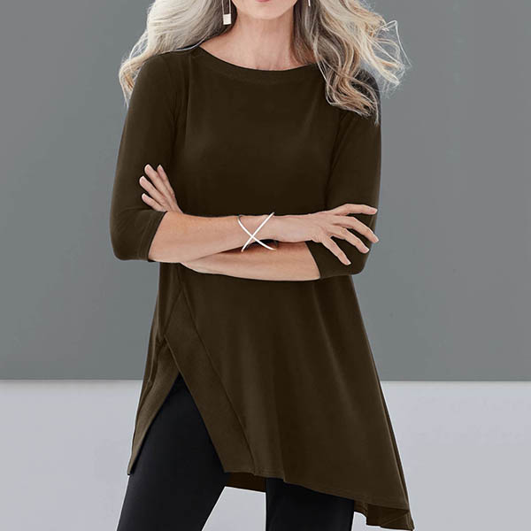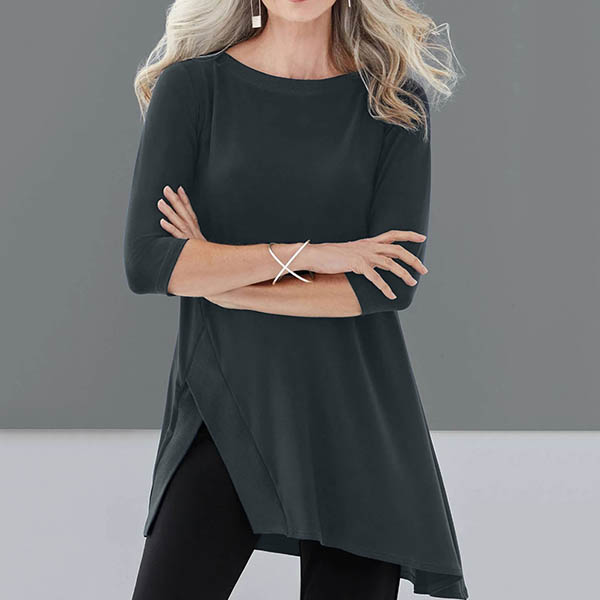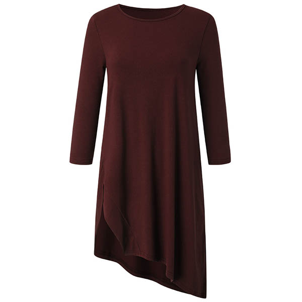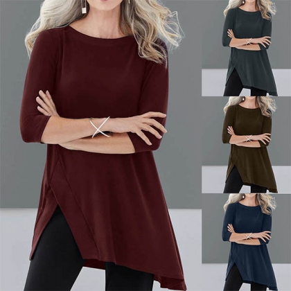Fashion Solid Color 3/4 Sleeve Round Neck Irregular hem T-shirt