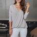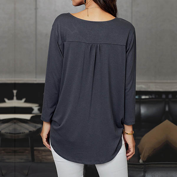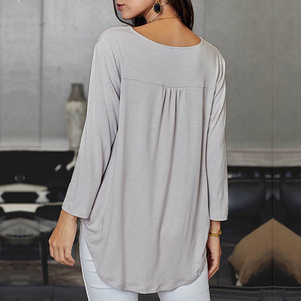 Fashion Solid Color 3/4 Sleeve V-neck High-low Hem Top
