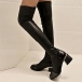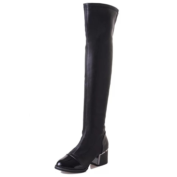 Mode enfärgade konstläder PU-blockklackade stövlar över knät.