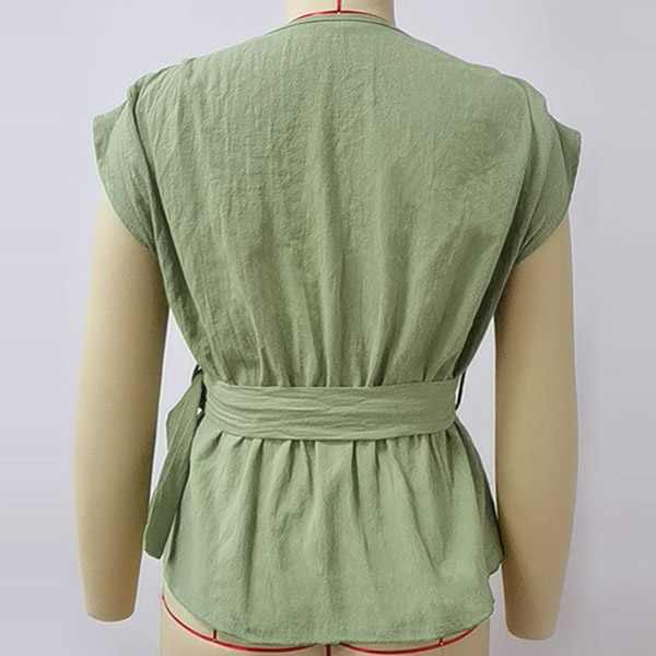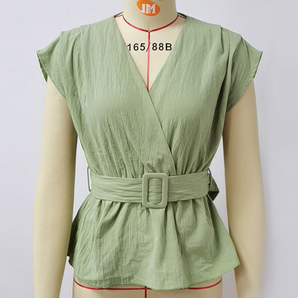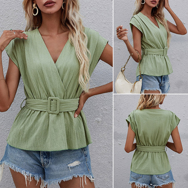The green tone becomes the fashion staple. So why not catch up with this trend with this green top? The unique cap sleeve and v-neck design can exude your feminine appeal and style sense. Comes with a waistband design,which can enrich the design style as well as showcase your waistline. Just slip into this piece to boost your charm!