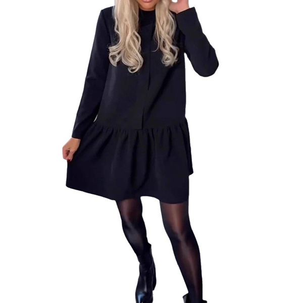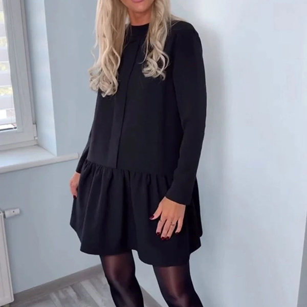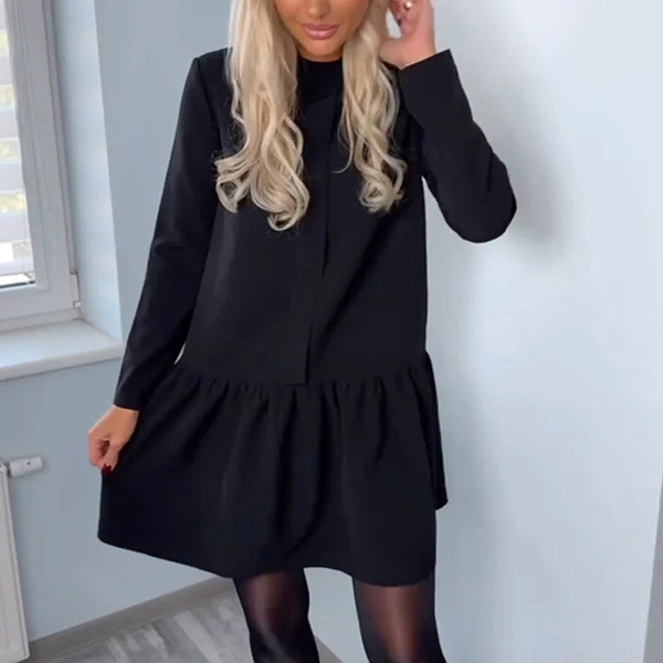 Trendig enfärgad långärmad tutu-miniklänning med rund halsringning