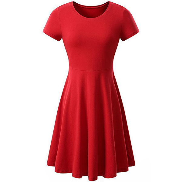 Detta är en mångsidig och stilren klänning som passar perfekt för alla tillfällen. Den runda halsringningen erbjuder en klassisk och diskret stil som ger ett rent och modernt utseende. De korta ärmarna ger klänningen en avslappnad känsla, vilket gör den idealisk för både vardagsbruk och speciella tillfällen. Finns i flera färger.