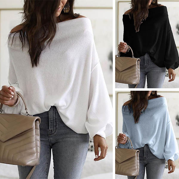 Fashion Solid Color Dolman Sleeve Boat Neck Loose Top