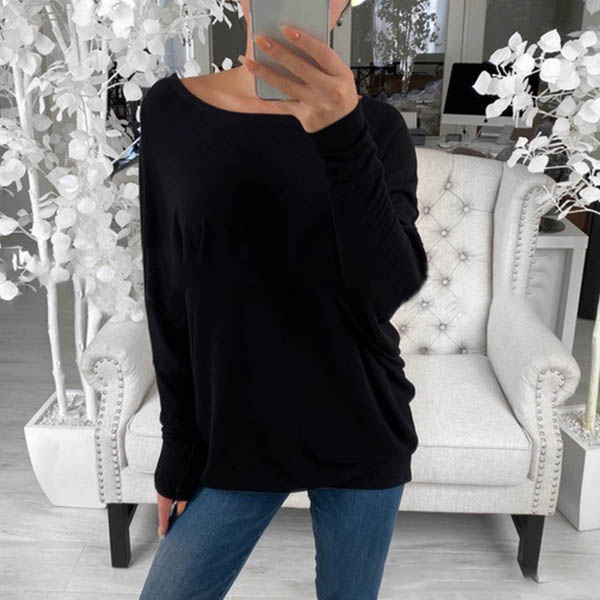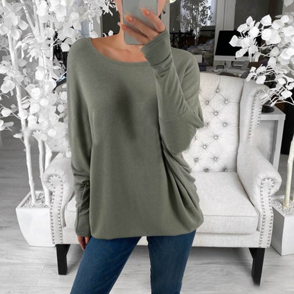 Fashion Solid Color Dolman Sleeve Round Neck T-shirt
