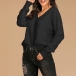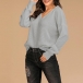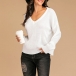 Fashion Solid Color Dolman Sleeve V-neck Loose Knit Top