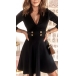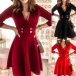 Mode enfärgad dubbelknäppt V-ringad långärmad miniklänning