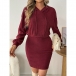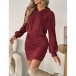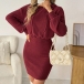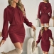 Damklänning med huva och dragsko, enfärgad med långa ärmar och hög midja
