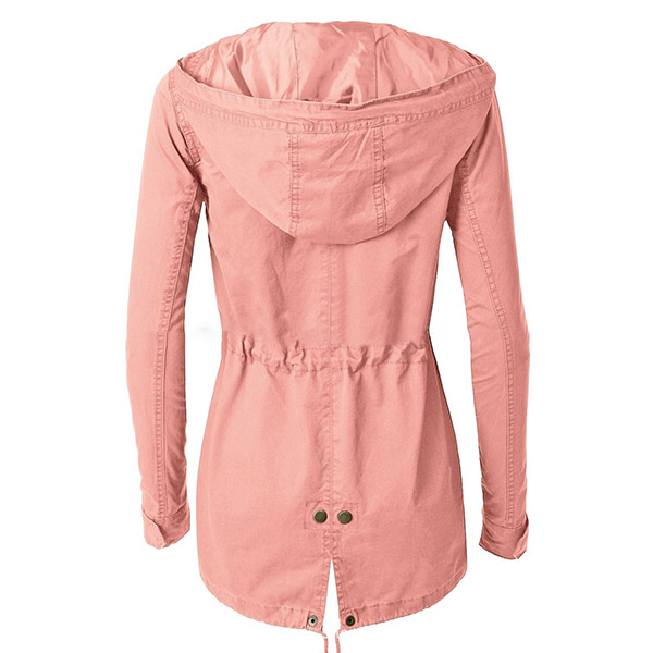 Fashion Solid Color Drawstring Waist Hooded Jacket