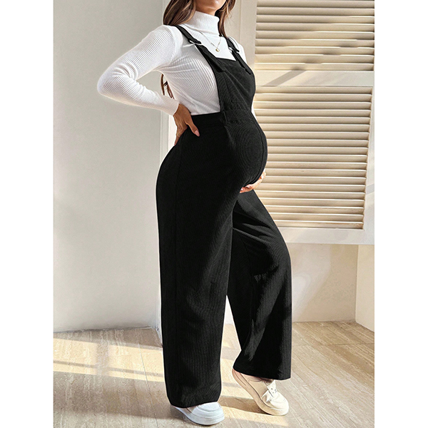 Modernt enfärgade gravidstrumpbyxor med justerbar, elastisk midja och axelbandshängslen