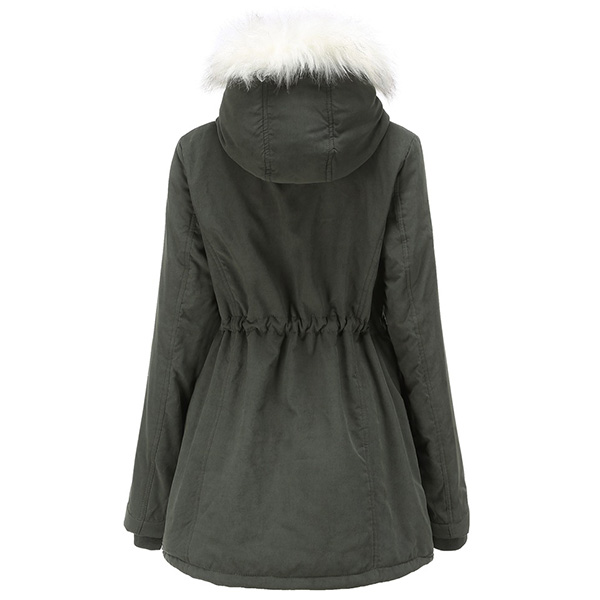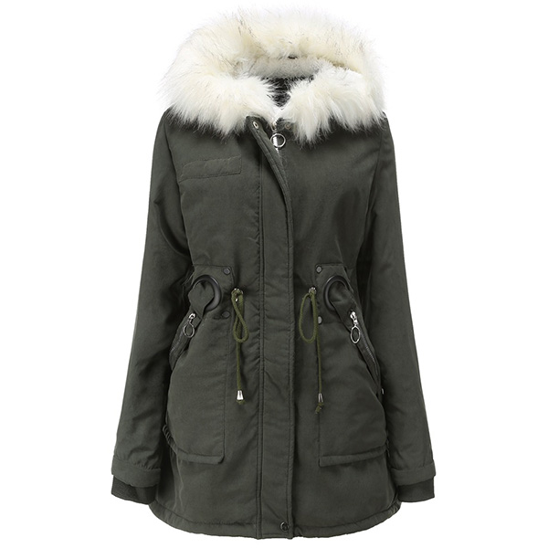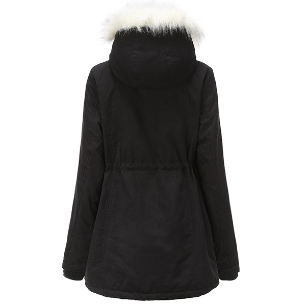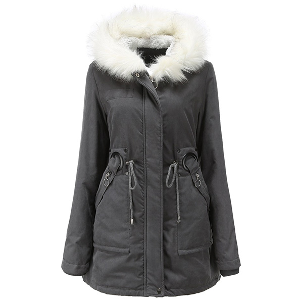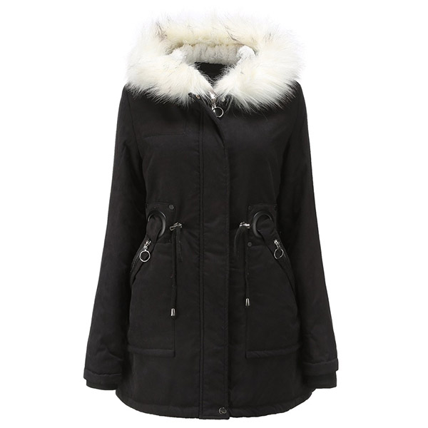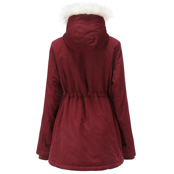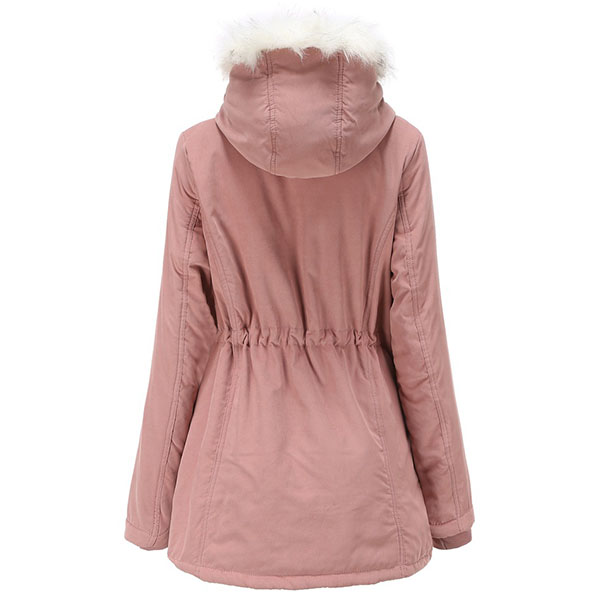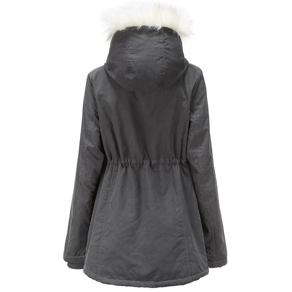 For these cold days,this padded coat can be a good choice. Solid color style,the faux fur spliced hooded silhouette and plush lining design can keep you warm and comfy all the day,while the drawstring waist design can help showcase your figure. Let it accompany your chilly days.