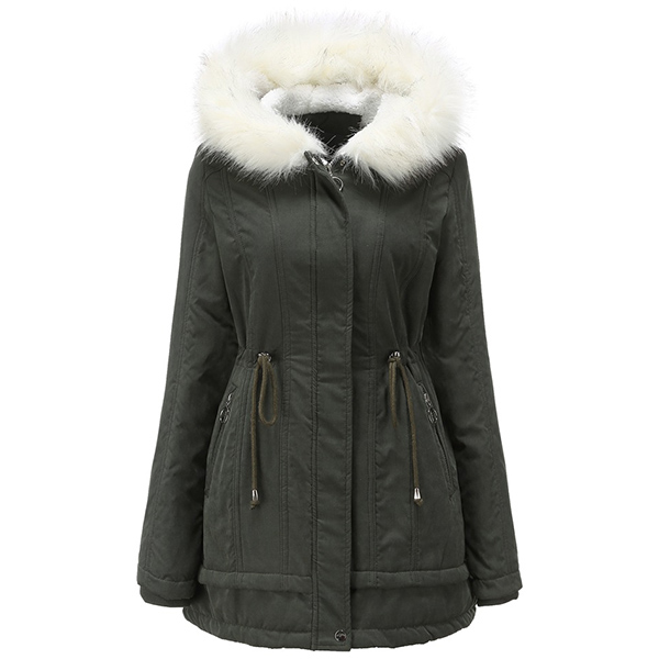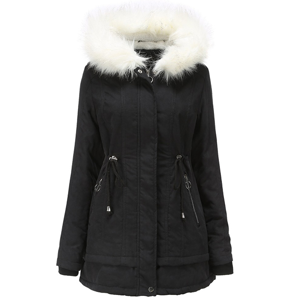 You can get yourself prepared for the chilly winter days with this padded coat. It comes with a solid color,the faux fur spliced hooded silhouette and plush lining design can ensure you a warm and comfortable day,while the drawstring waist design can help showcase your figure. You can trust in this piece to give you a warm and wonderful day!